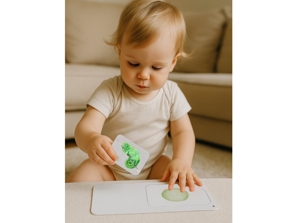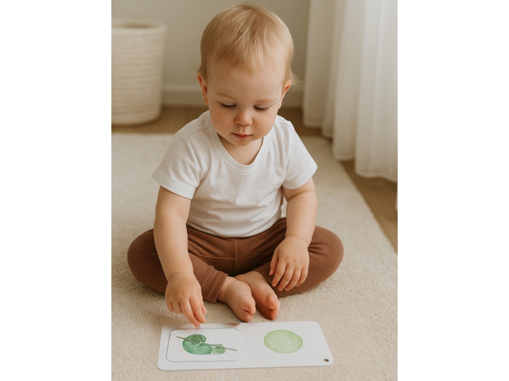 První pomůcka pro nejmenší děti – 1 barva, 1 obrázek, žádné zahlcení. Hravé učení bez zkoušení.