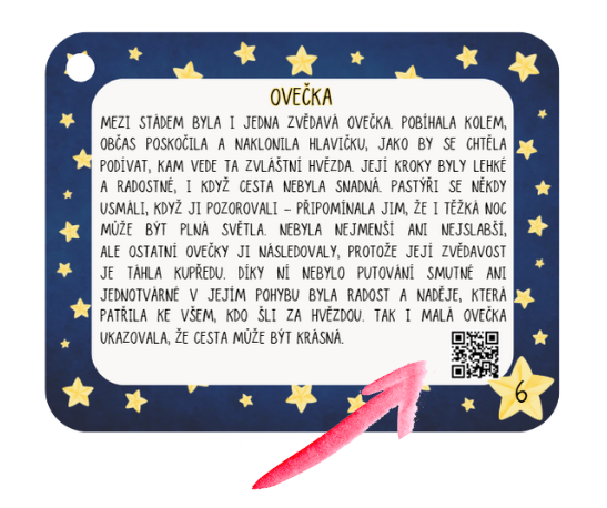 Hudba k Vánocům neodmyslitelně patří. Proto jsem k některým dnům přidala QR kódy s českými vánočními koledami, které příběh ještě víc oživí. Nejsou u každého dne – právě proto působí jako malé překvapení, které dodává adventu tu pravou atmosféru.