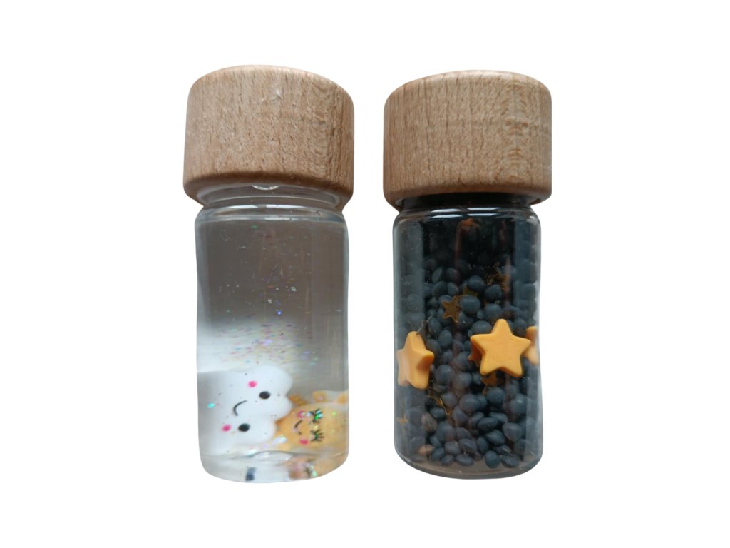 Objevte duo senzorických lahviček vytvořených speciálně pro nejmenší děti. Každá z nich rozvíjí jiné smysly – a dohromady tvoří harmonii kontrastů dne a noci.