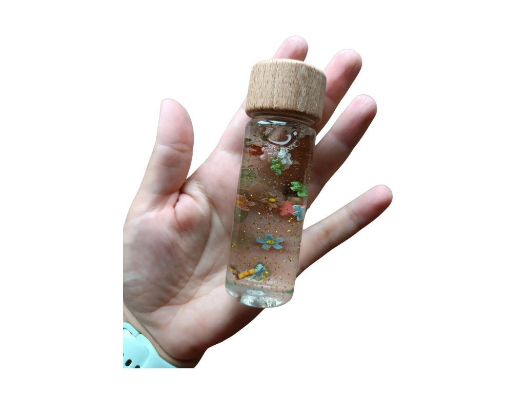 ⚠️ Upozornění: Nejedná se o hračku. Výrobek slouží jako senzorická pomůcka k pozorování pod dohledem dospělé osoby. Lahvičky nejsou určeny ke kousání ani ke hře bez dozoru.
